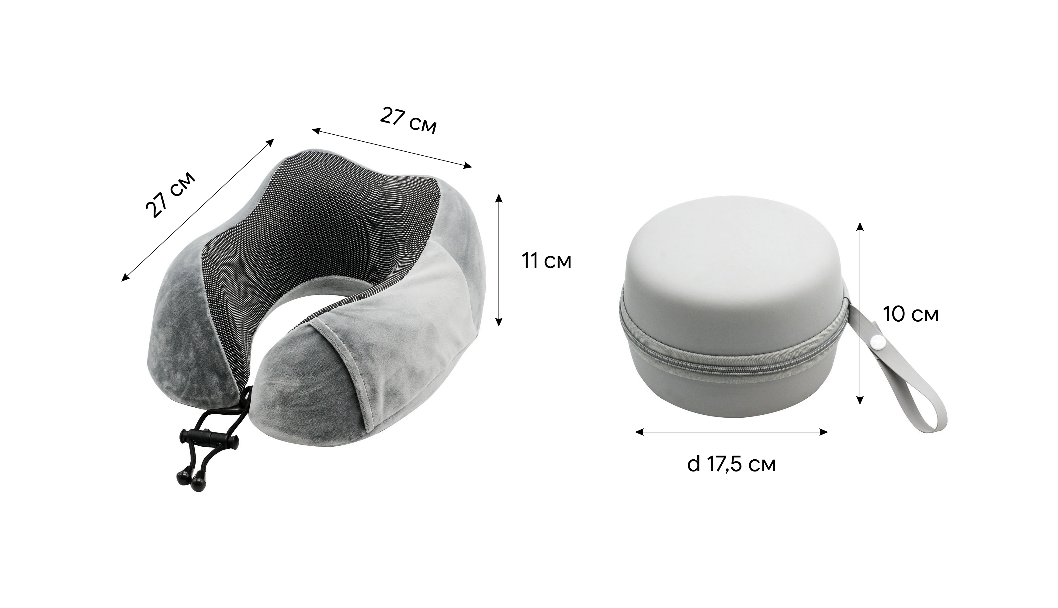 Подушка "Cloud" для путешествий в футляре, цвет серый