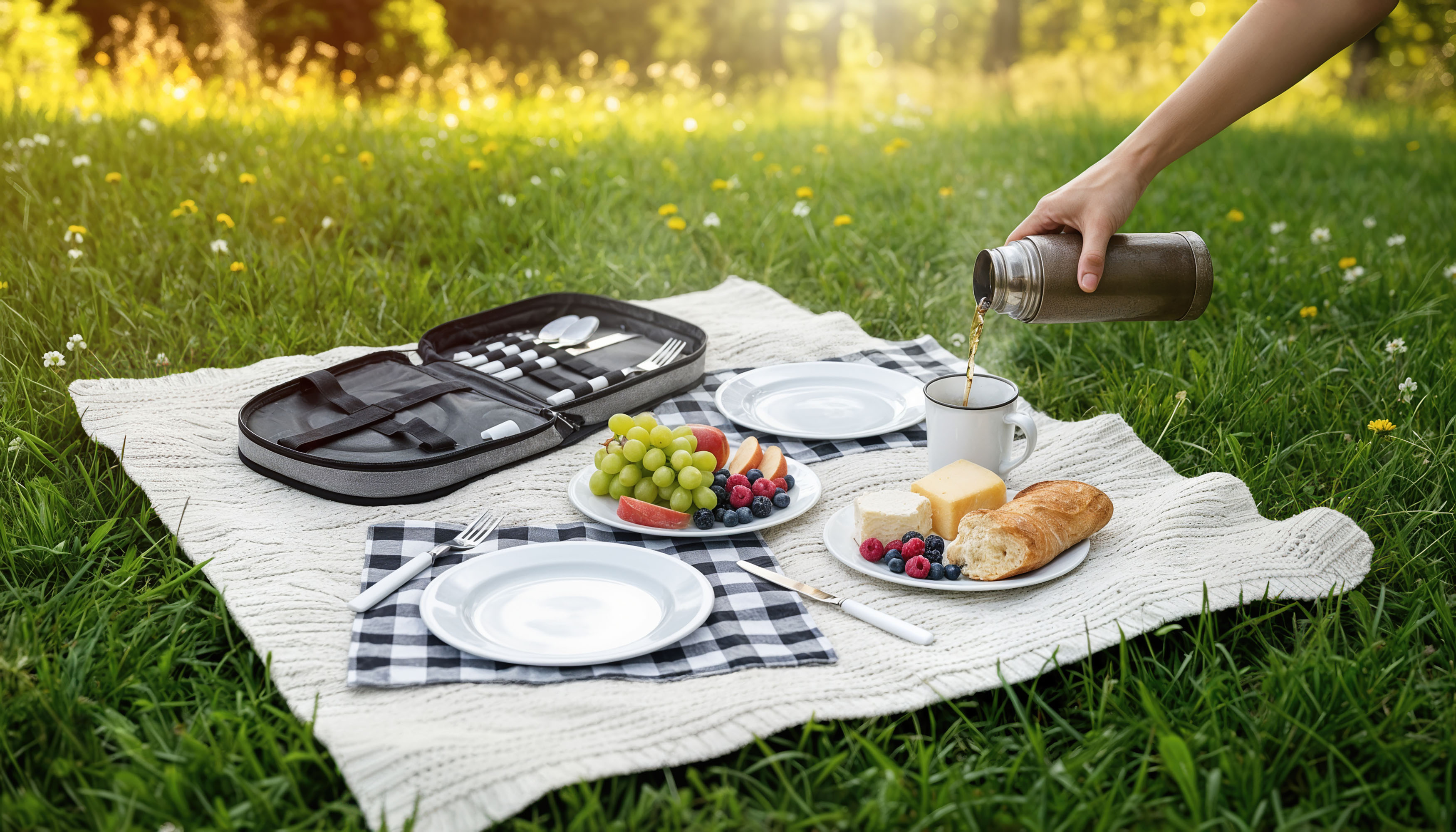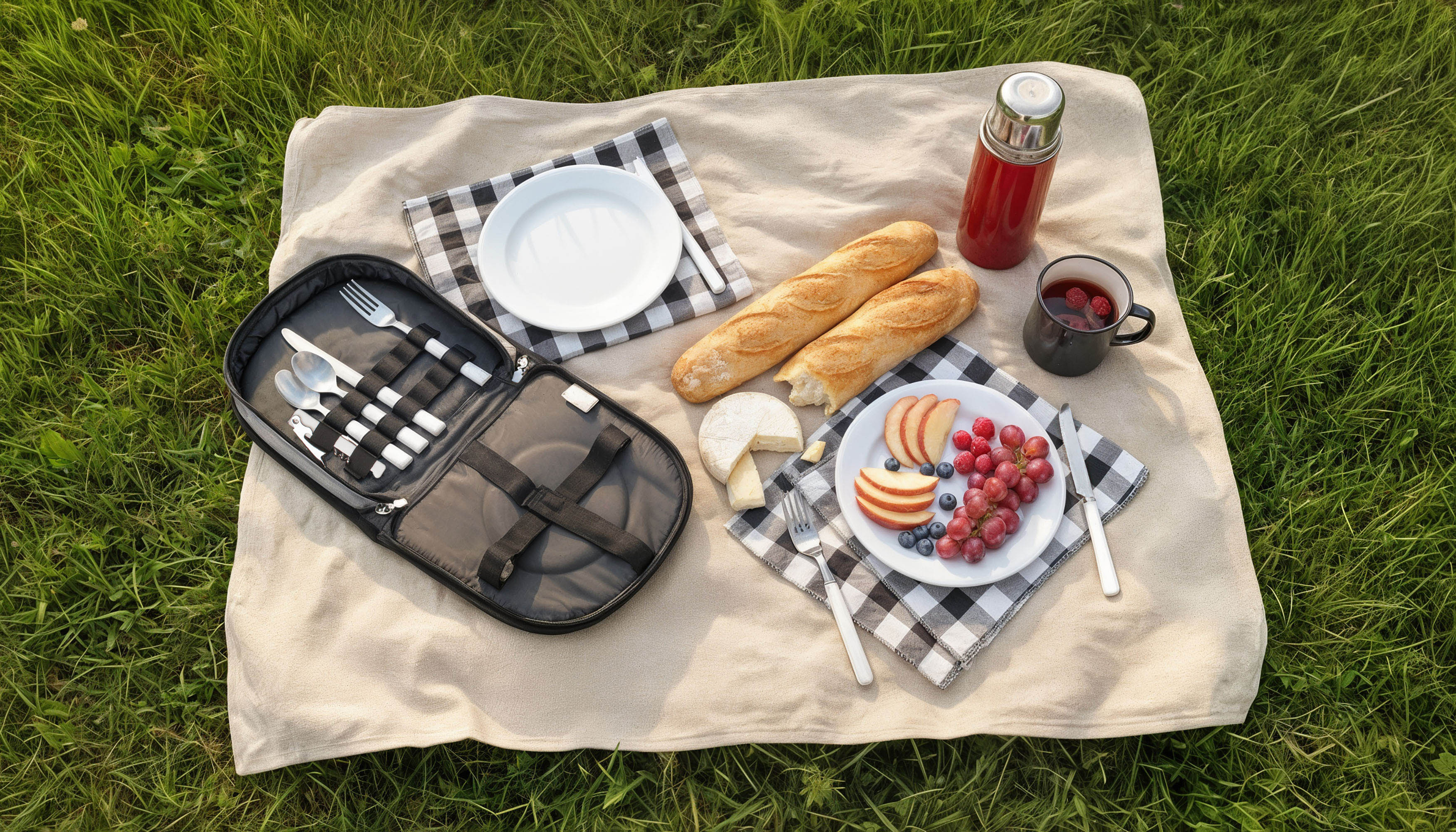 Набор для пикника "Ланч" на 2 персоны, цвет серый с черным