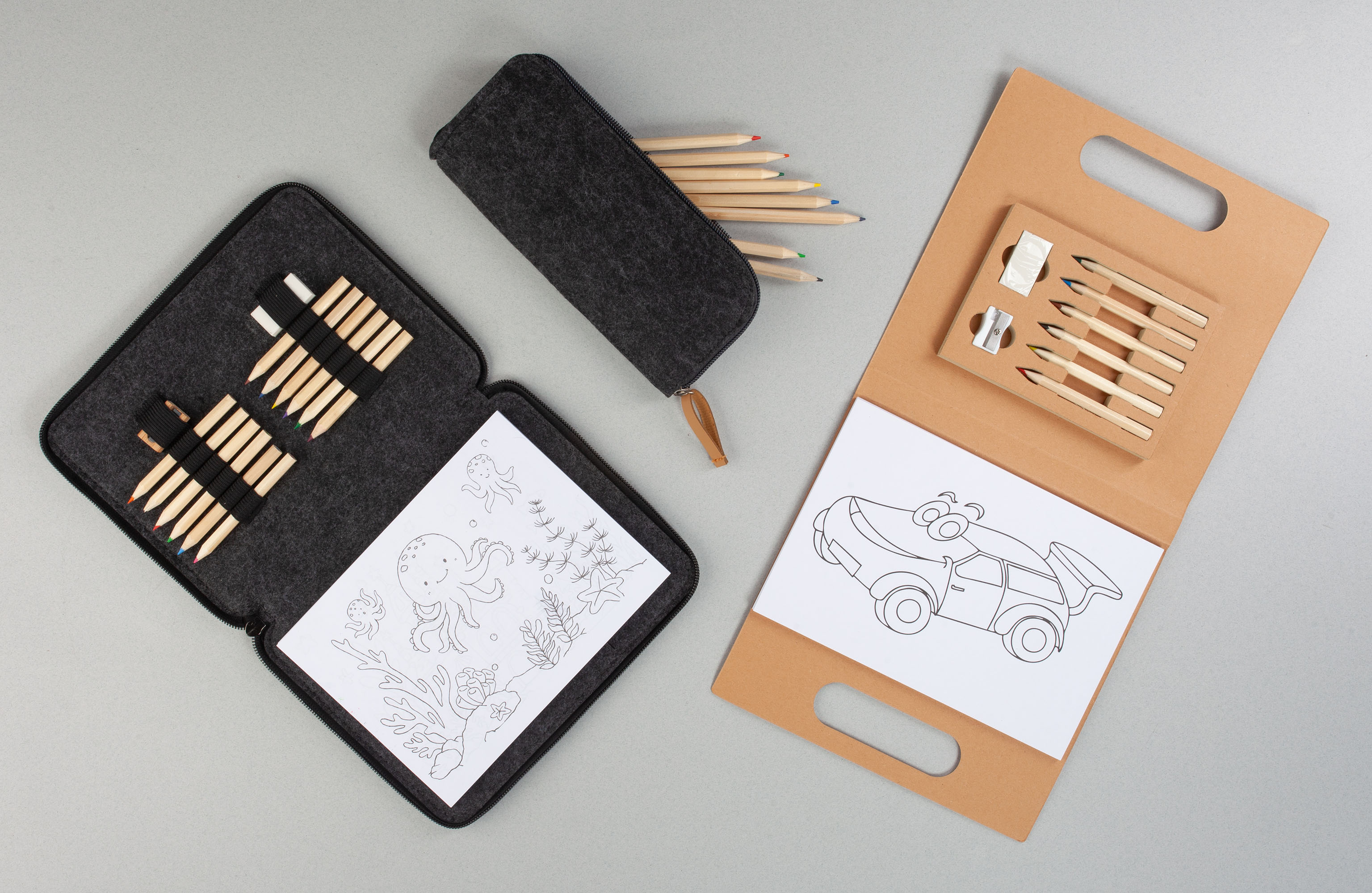 Набор для рисования "Гамма" включает 8 цветных карандашей и практичный футляр из фетра для хранения.